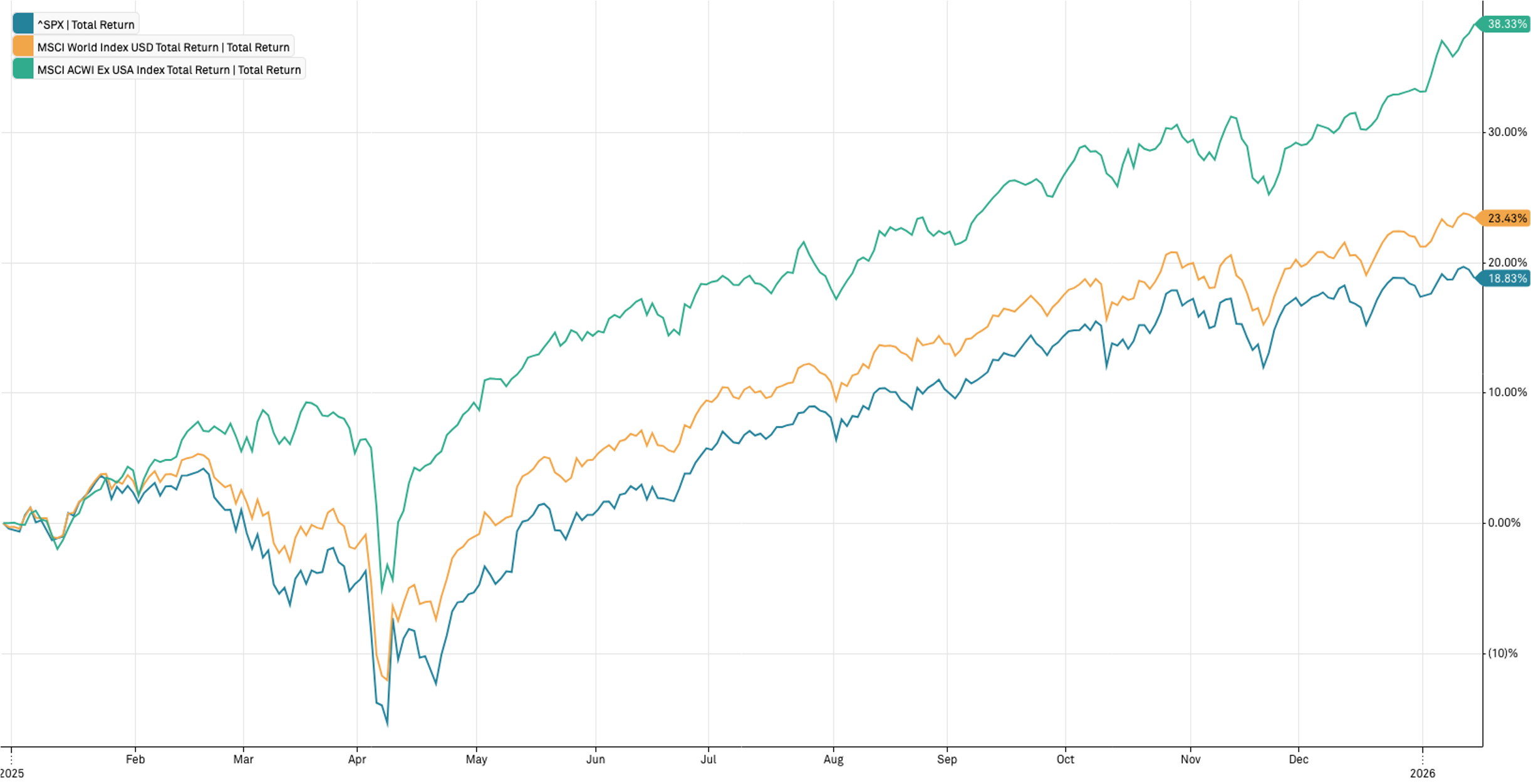 With some time having passed, I was curious about how a few of the observations I made in April had played out. At the time, equities outside the U.S. appeared to be less affected by the surge in geopolitical and economic uncertainty. This initially felt tentative, but a full year of data lends it more weight and makes the case for global diversification harder to ignore, particularly in the current climate.